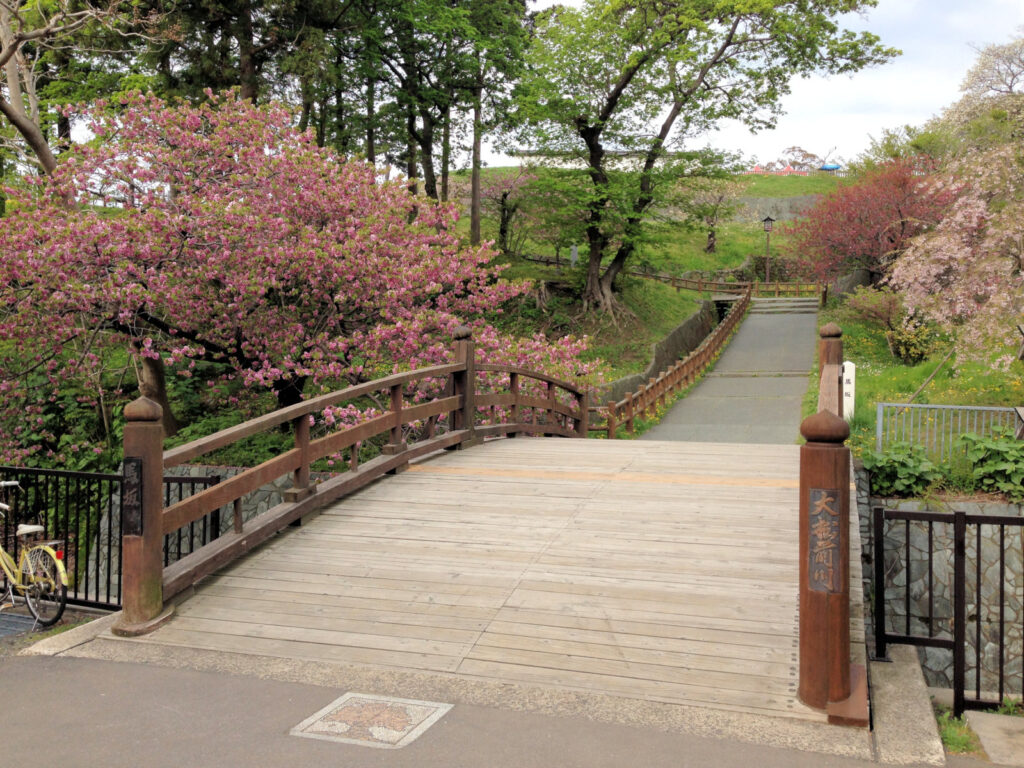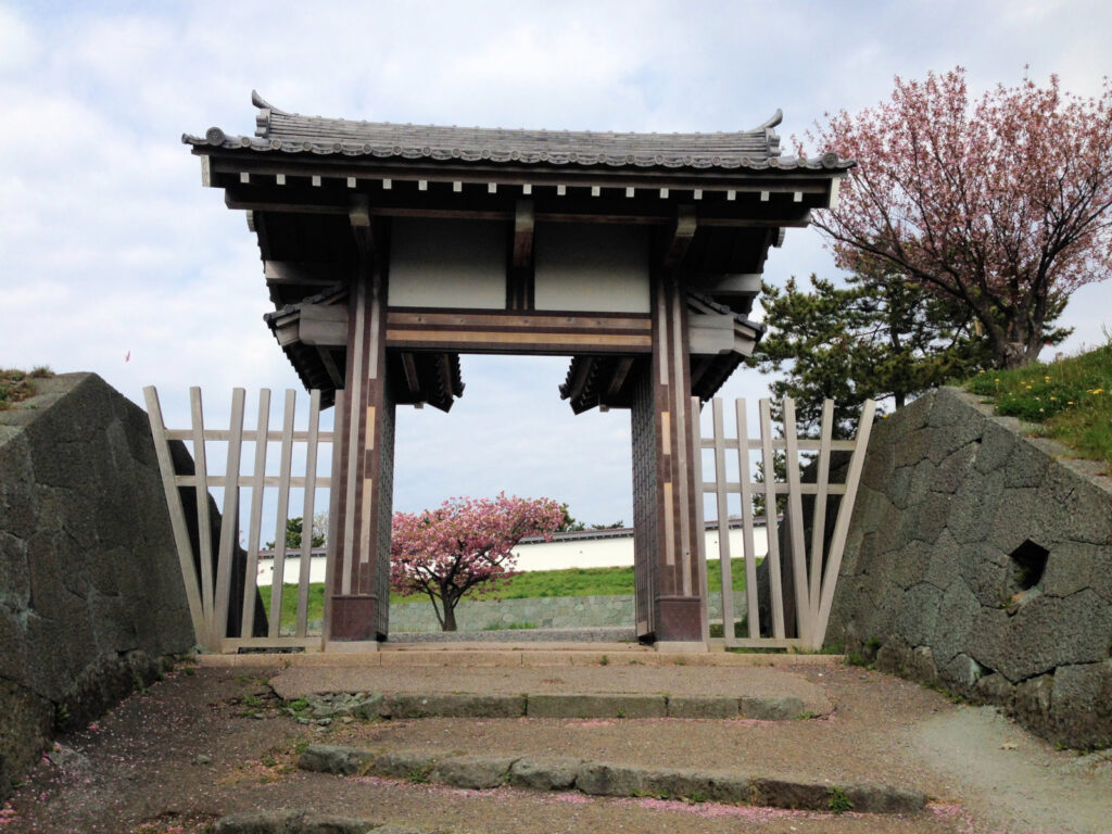 最終日は、まずは函館朝市をちょっとのぞきまして、それから函館の隣町上磯にある松前藩戸切地陣屋に向かいました。ここも2年前の道南オフで行ったところですけど、あの時は誰もいませんでしたけど、ここもちょっとした桜の名所で、五稜郭・松前城ほどではありませんが、たくさんの人が来ていました。