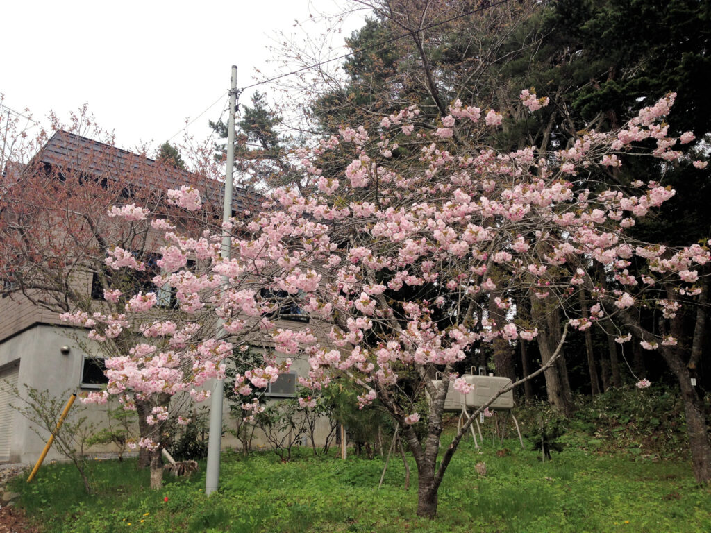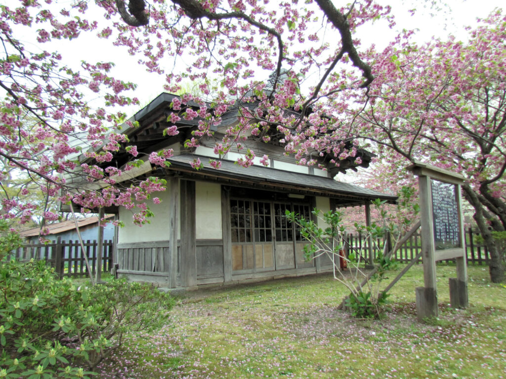 矢不来館に行けず悔しい思いで運転していると、茂別館のある矢不来天満宮に着いたので、立ち寄ってみました。ちょうど桜が咲いていてとてもきれいでした。松前城の辺りでも咲いている「南殿(なでん)」という桜のようです。裏参道の方の土塁や空壕、茂別館跡の碑などは昔のままでした。