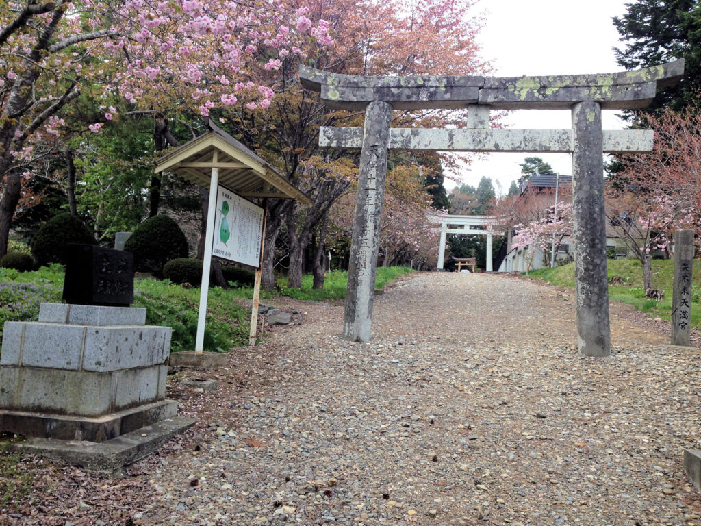 腹がふくれたところで、いよいよヲシャマンベ陣屋へと向かいました。駅前から少し室蘭方面へ戻り、長万部橋の手前で左折し5号線を長万部IC方面に少し進むと左側に長万部温泉の看板があります。そこでまた左折しまっすぐ行くと突き当たりに神社の鳥居があります。現在は飯生神社がありますが、ここがかつてのヲシャマンベ陣屋の地です。