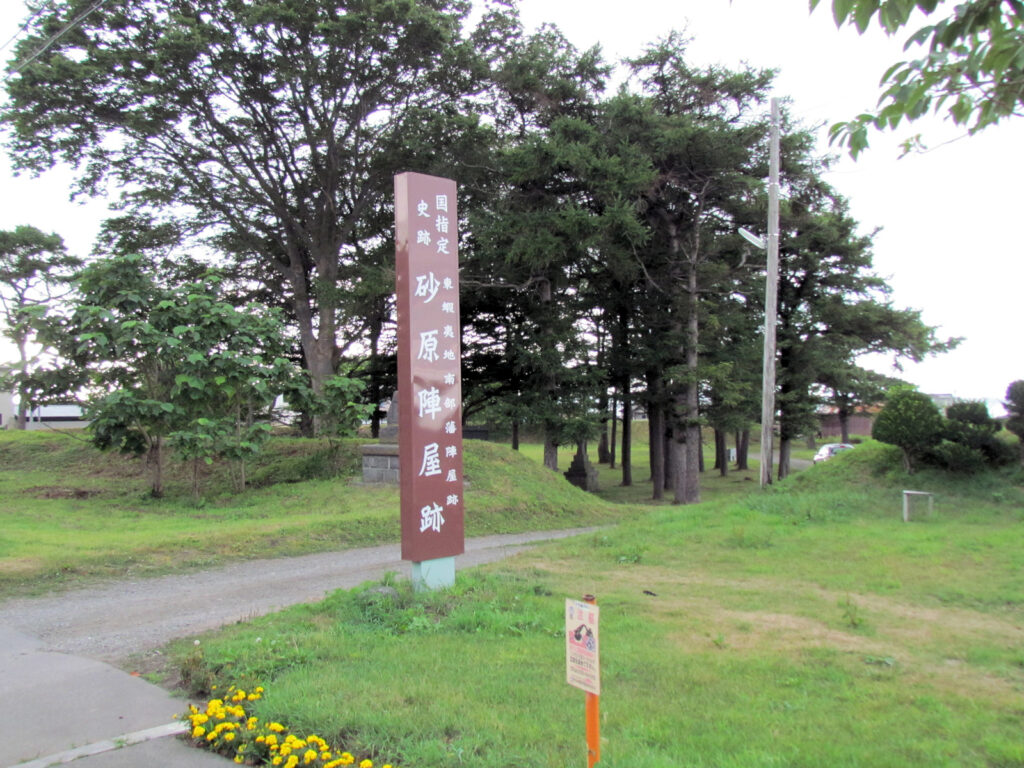 この砂原陣屋はちょうど砂原町の市街地の真ん中に位置しており、国道278号線に面しているので見つけやすいです。いままで行ったモロラン陣屋・ヲシャマンベ陣屋と同じく土塁が方形となっており、説明板によると東西37間(66.6m)、南北約33間(59.4m)の広さで、土塁の高さが約1丈(3m)あるそうです。