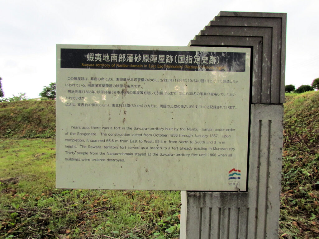 ちょっと草が繁っていてわかりにくかったのですが、たしかに形態的には室蘭・長万部のものと似た形でした。ただ3つの出張陣屋の中では一番小さく室蘭の半分もない感じがしました。(東側半分が草に埋もれていたので余計狭く感じたのですが(^^;))