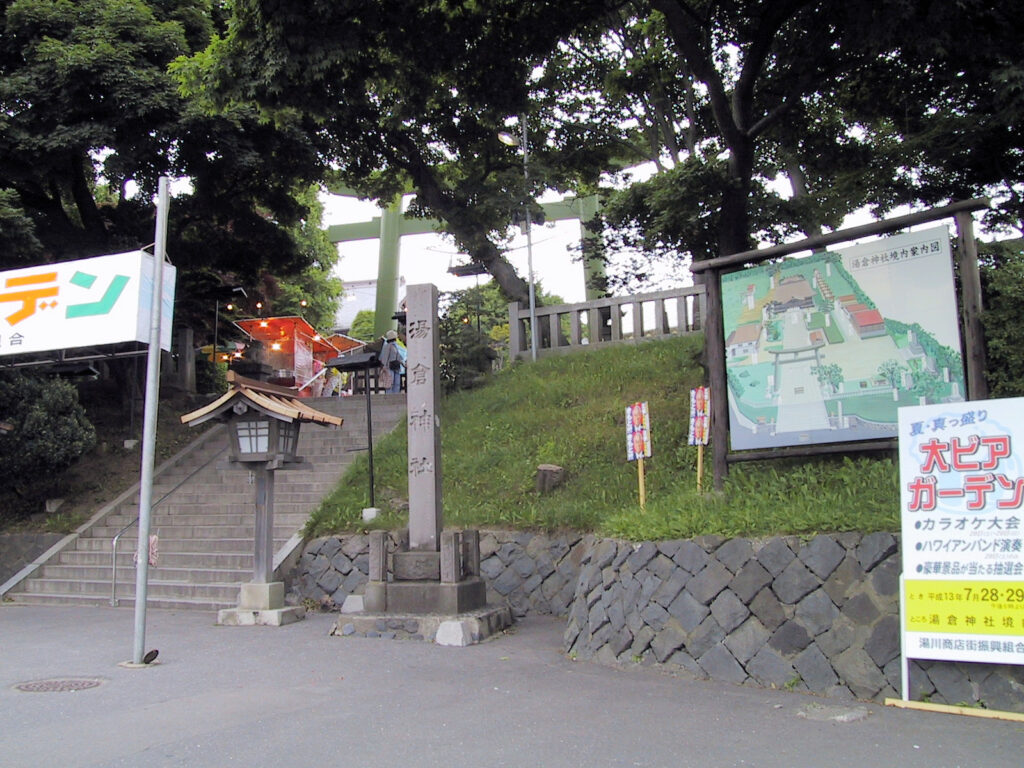 現在では神社の境内となっており遺構らしき物はありません。私が行った時には境内がビアガーデンと化しておりました(^^;) 鳥居の数m横の方には「湯の川温泉発祥の地碑」というのがあり、江戸初期からこの辺には湯座があり薬師仏を祀る社殿(現在の湯倉神社)があったそうです。