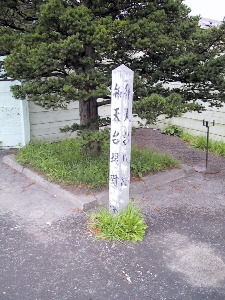 箱館戦争の際には、四稜郭と五稜郭を結ぶ防御線上の重要地として旧幕府軍が砲台を設けて立てこもり、権現台場と呼ばれました。明治2年(1869)5月11日、新政府軍の攻撃を受け東照宮の社殿は焼失し、残った狛犬、手水石は明治19年11月東照宮(現・宝来町、平成3年陣川町に移転)に移されましたが、五稜郭や弁天台場の石垣造りを担当した石工井上喜三郎の作である御影石の大鳥居は残され、現在は神山稲荷神社が建っています。