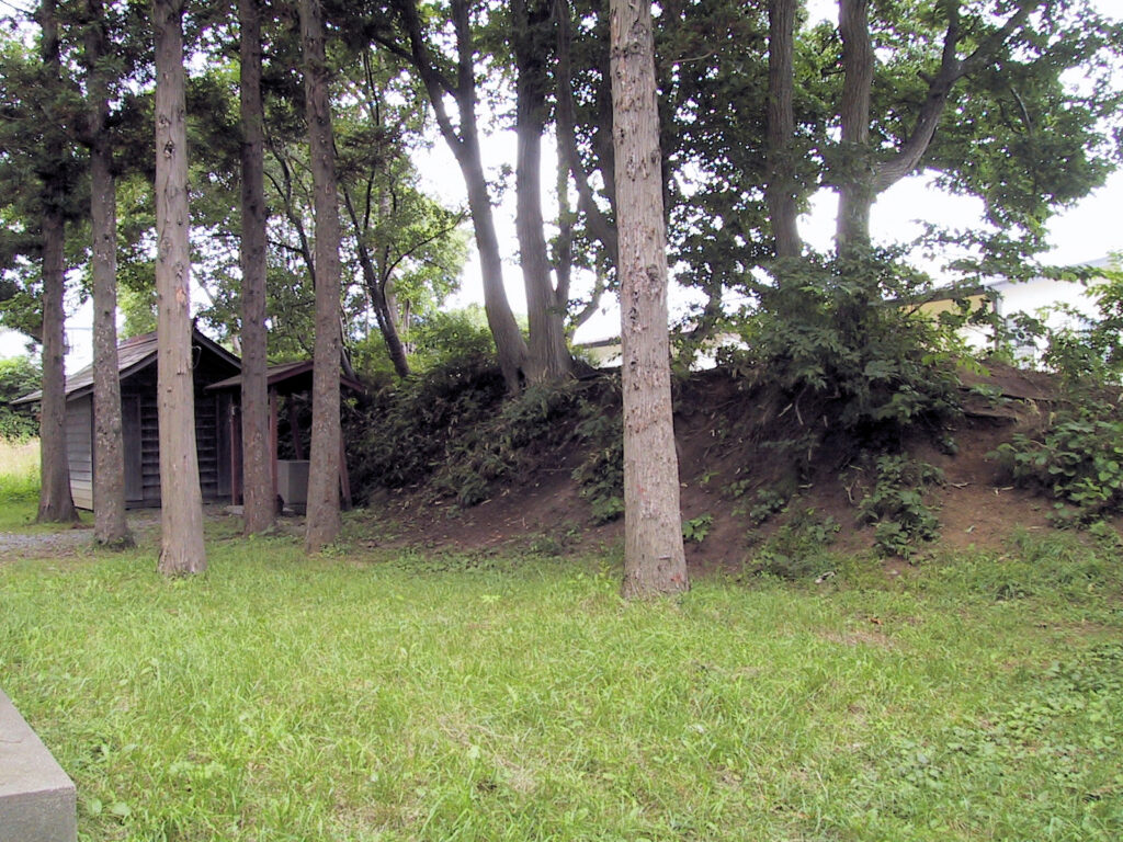 ただちょっと不思議なのは、室蘭・長万部・砂原の南部藩の出張陣屋では空堀・土塁はあるものの石垣は見かけたことがないということです。まあ、出張陣屋と元陣屋の違いではと言われてしまえばそうなのかもしれません。ですが、『日本城郭大系』には再築された陣屋は、「十数棟の建物があったが、いずれも仮普請の粗末なものであった。」とありますので、石垣を築くほど手を掛けたとは思えません。それとも一回目の時に築いたものなんでしょうかねえ? よくわからんです。(2000/8/11)