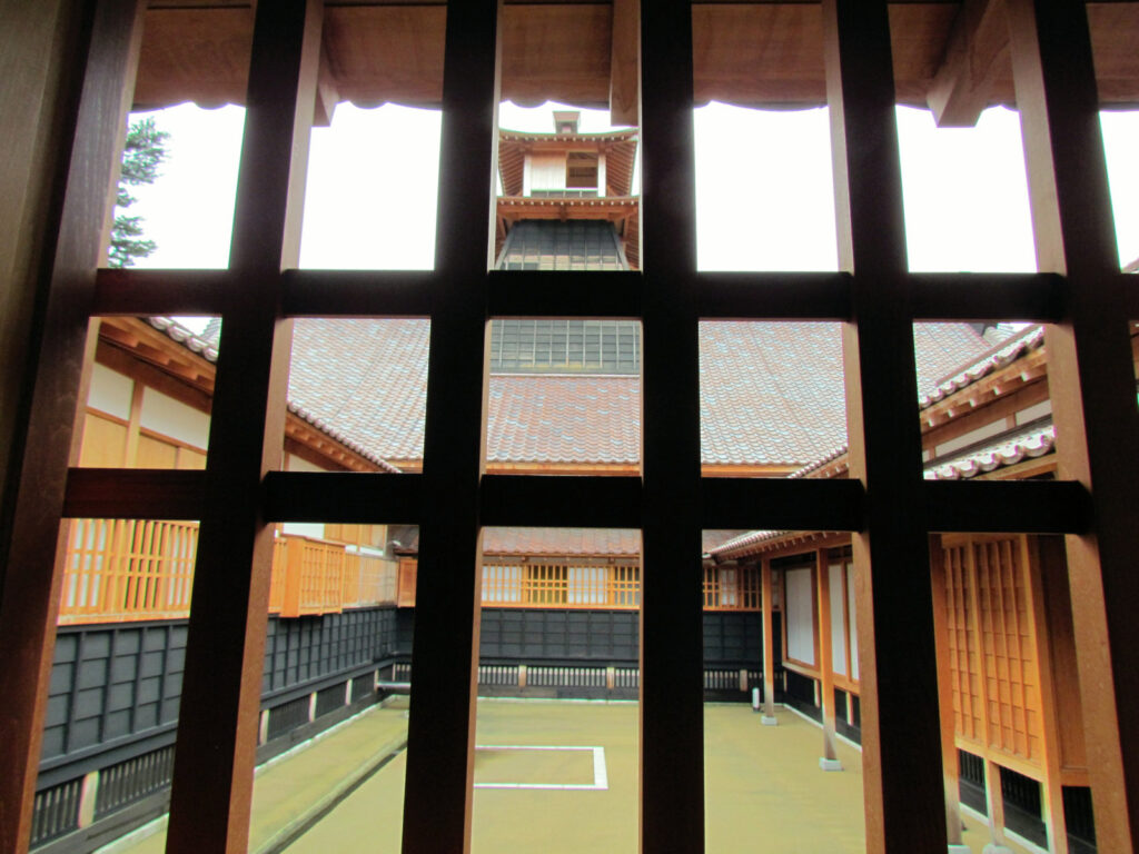 人がいないうちに左右と正面からの姿をカメラに収めます。赤い屋根瓦がいいですねえ。中に入ると、まだまだ新しい建物の雰囲気を感じます。大広間から眺める庭も気持ちいいですし、裏の廊下から格子越しに見上げる中庭と太鼓櫓もいい姿です。奥の「歴史発見ゾーン」では、五稜郭の歴史を解説する展示もいいですが、端末で世界の稜堡式城郭をGoogle Mapで確認できるのが面白かったです。長野県の龍岡城もありました。