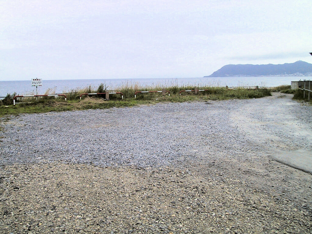 ここは根崎の温泉街にほど近く、根崎公園と国道をはさんで反対側の裏道の方にあります。元函館酒センターの駐車場の海側の張り出しが台場跡で、ひづめさんの話では数年前までは「根崎台場跡」の標柱が立っていたそうですが、今はもうそれも失われてしまい、台場跡だということを偲ぶなにものもありませんでした。