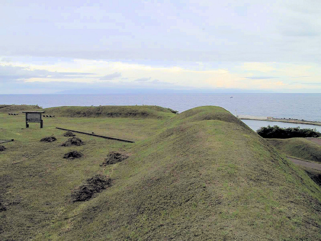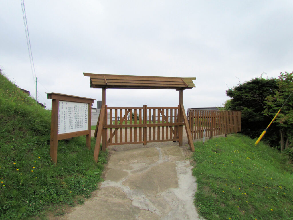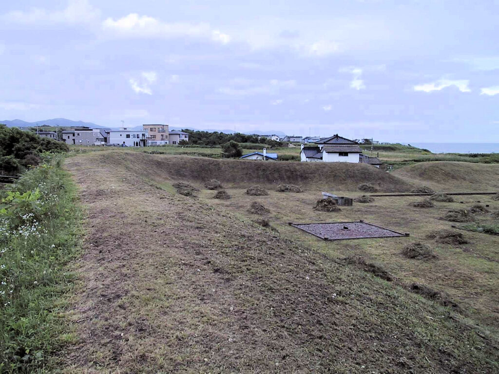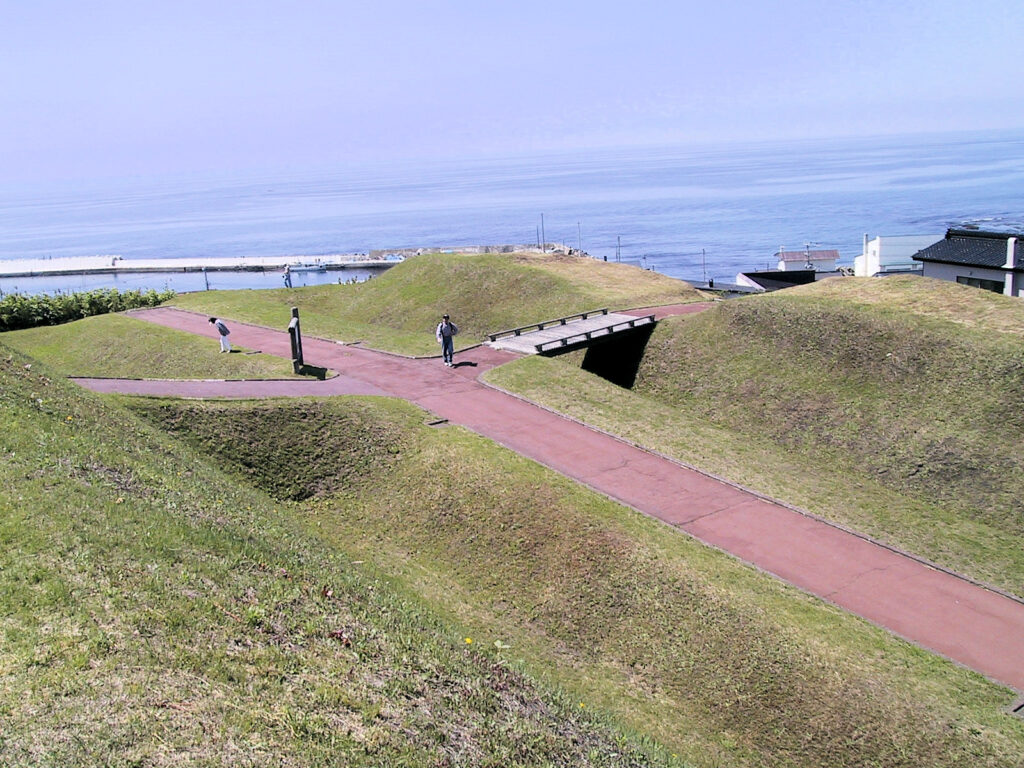 旧戸井町の市街、旧戸井町役場(現函館市役所戸井支所)の場所、海岸段丘上にあったといわれています。14世紀後半頃のものと考えられており、コシャマインの戦い以前に落ちたと言われているそうです。