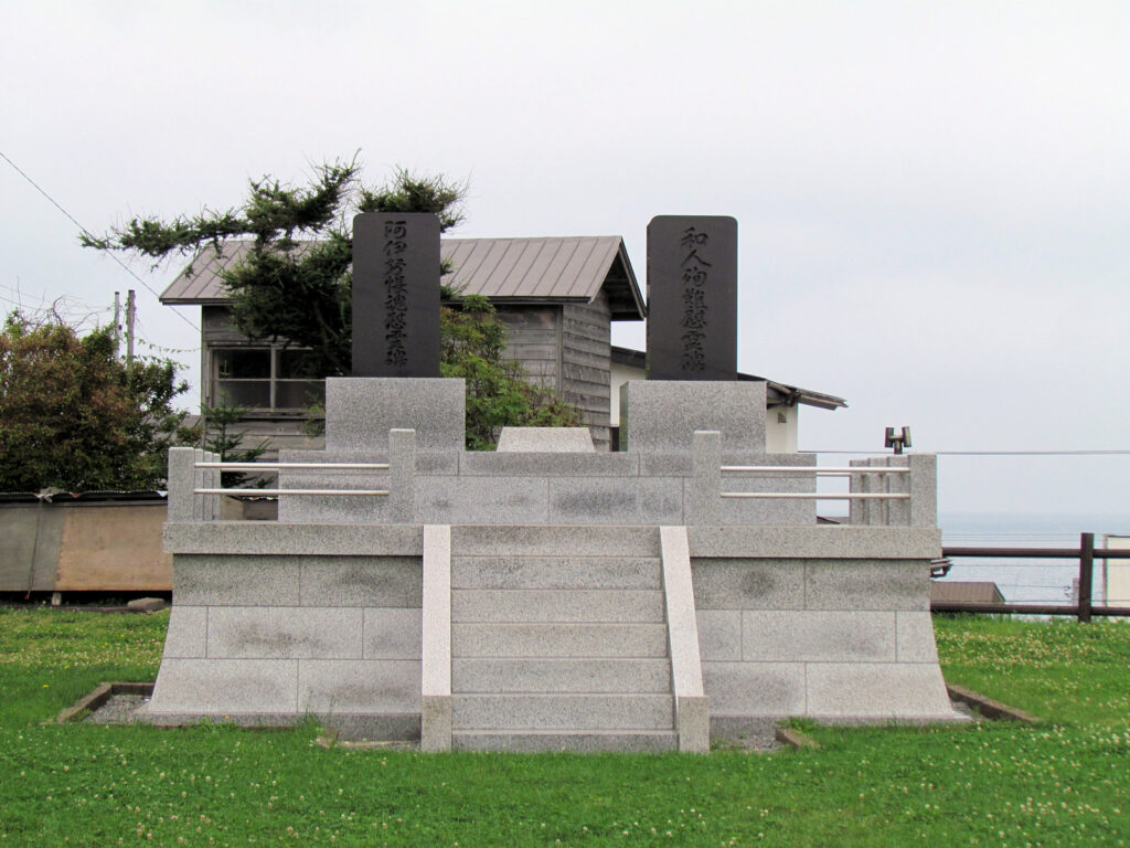 入口の横にコシャマインの戦いの時の和人・アイヌの慰霊碑がありました。きれいだったので新しいものかと思いましたが昭和45年落成と書かれていたので違うようです。以前来た時にあったのかどうかちょっと記憶が無いのですが…