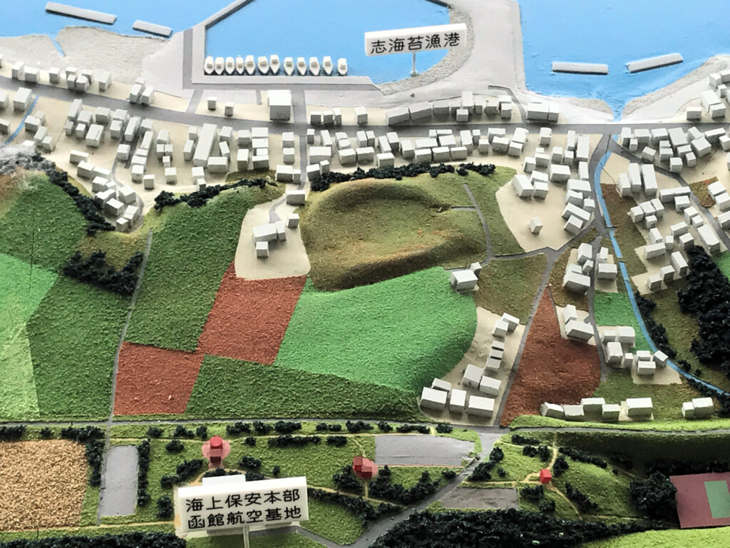 このあと近くの函館空港に行ったのですが、そこにあった空港の模型の中に志苔館もちゃんと再現されていました。
