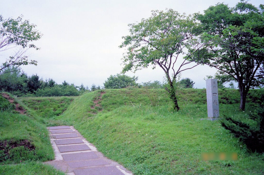 短時間で陥落したのもさもありなんという感じです。でも蝶が羽を広げたようなきれいな土塁と、桝形虎口になっている入口はなかなかの見所です。(2001/06/16)