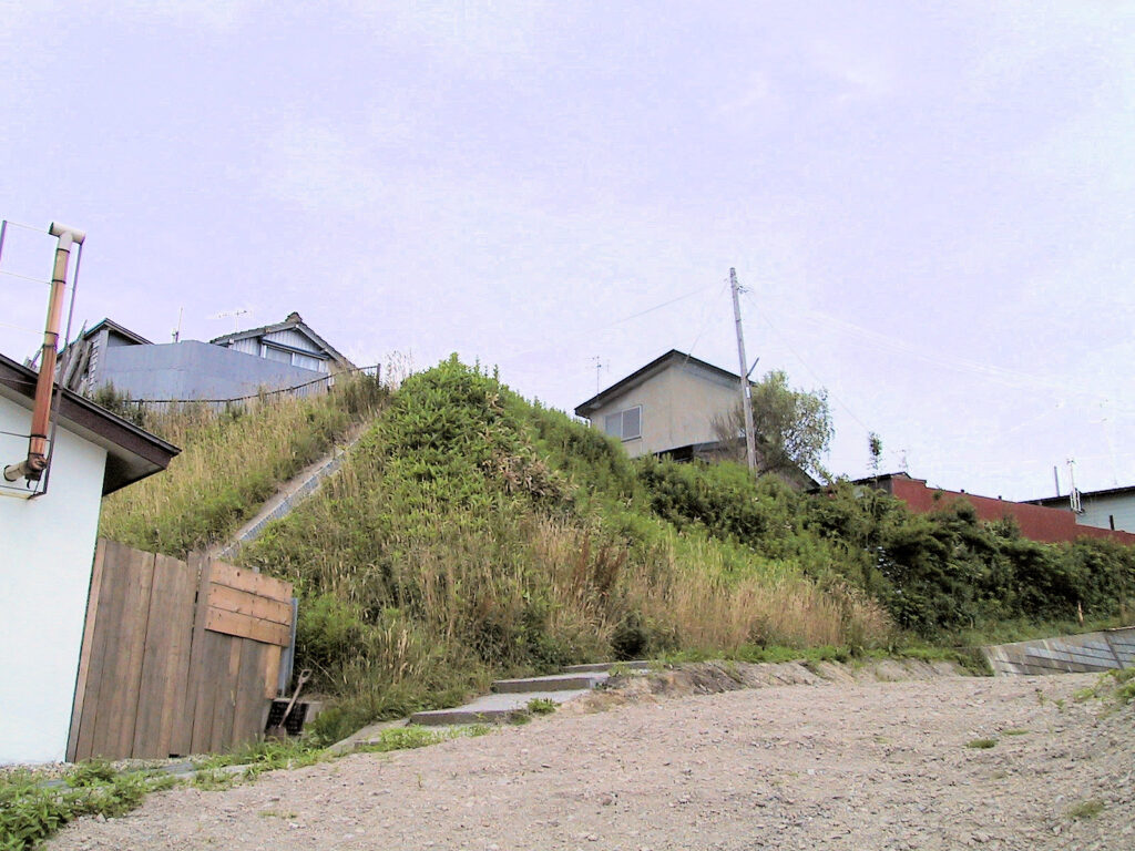 『はこだて歴史散歩』に弥右衛門川館は与倉前館の西方500mほどの所に弥右衛門川という小川があり、近くにある同名のバス停から海側に少し下りたあたりの段丘上あったといわれるが、その所在ははっきりしないと書かれていますが、ひづめさんのサイトを参考に探したところ、それらしき段丘がありました。立地的には与倉前館と似ていて、海に向かって張り出しており、のろしばとしては適当な場所だと思います。
