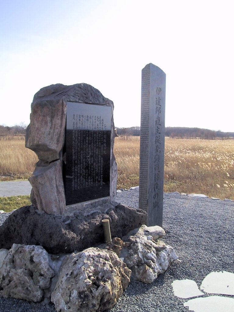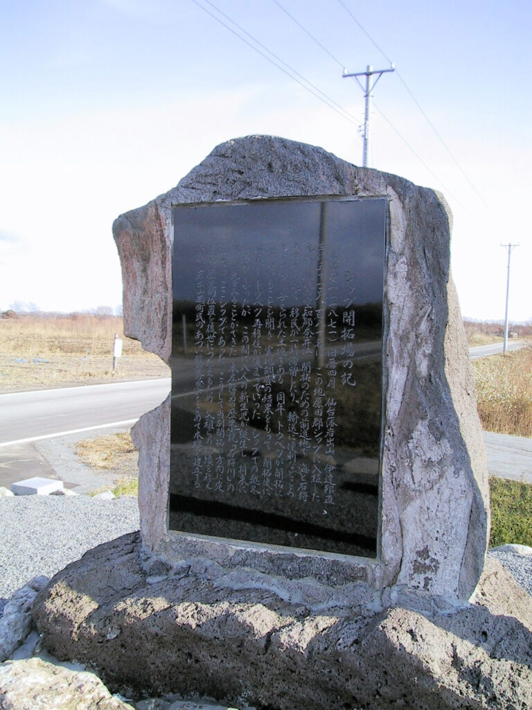 この辺りが、かつて仙台藩伊達家の一門で岩出山領主だった伊達邦直主従が入植したところです。国道を左折してしばらく行くと、伊達邦直移住記念碑があります。伊達邦直は維新後、家中まとまって北海道へ移住し、最初この地へ入りましたが、砂地で収穫はなく、翌年には当別町へと移り、そちらで開拓に成功しています。