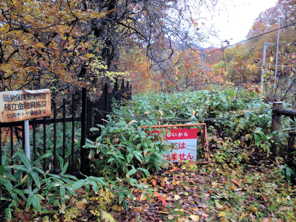 10月後半はあちこちに紅葉を見に行きましたが、この日は夕張にある滝の上公園です。じつはここには以前来たことがあります。それはこの公園の端に滝の上チャシがあるからです。ということで10数年ぶりでしたが、写真のようにチャシ部分は立入禁止になってました(; 😉