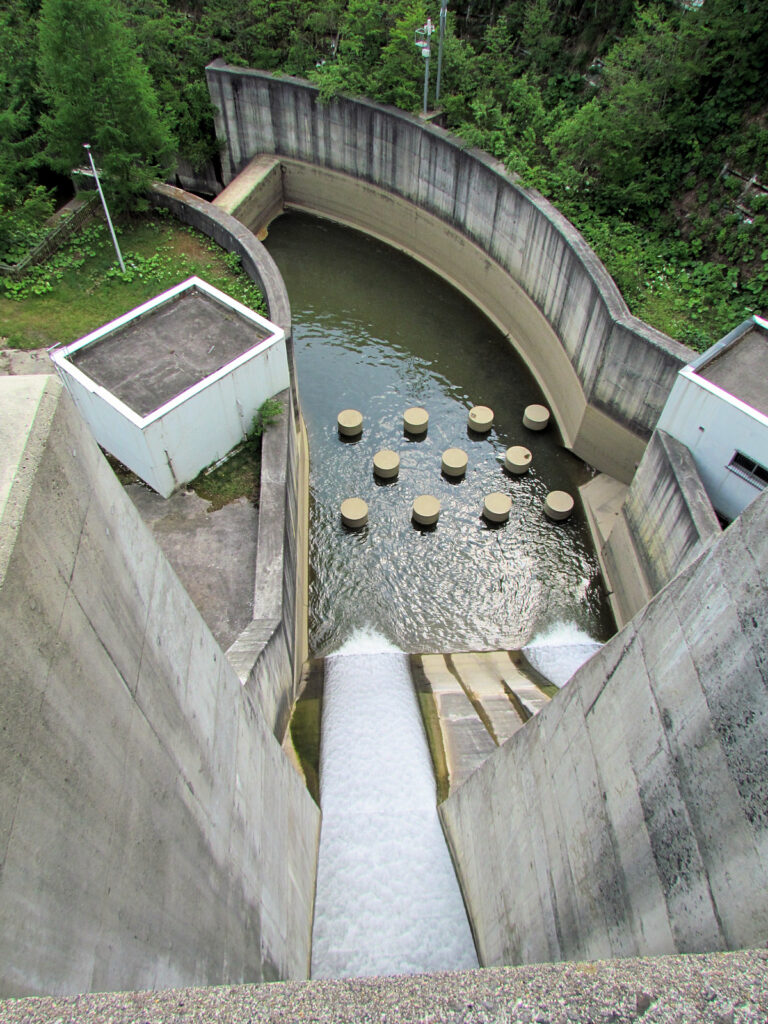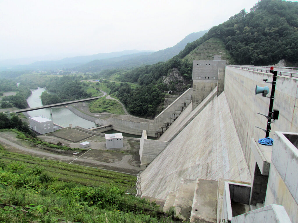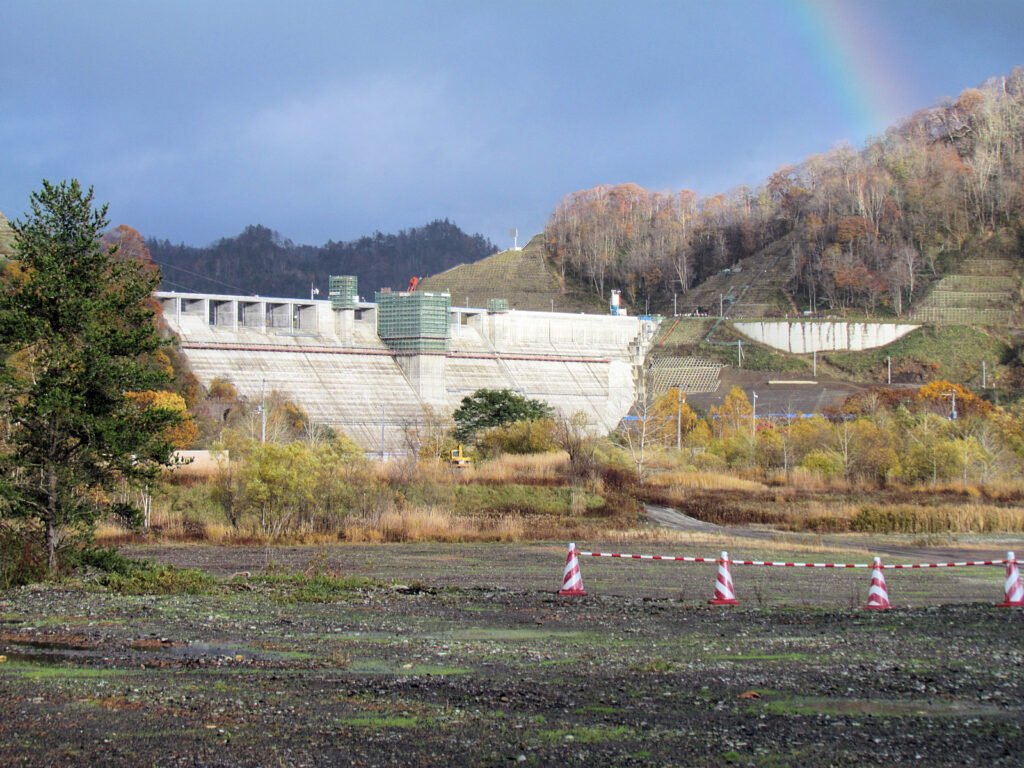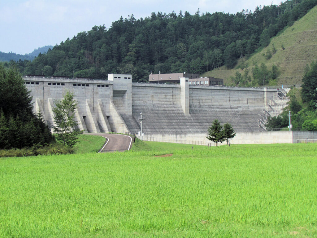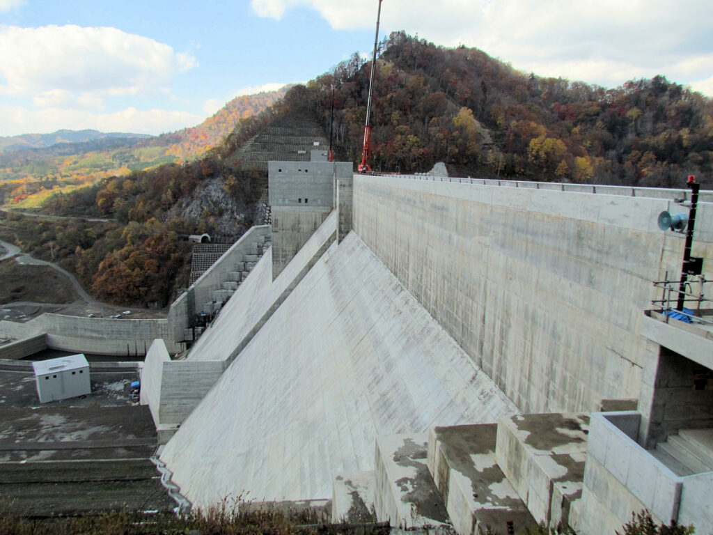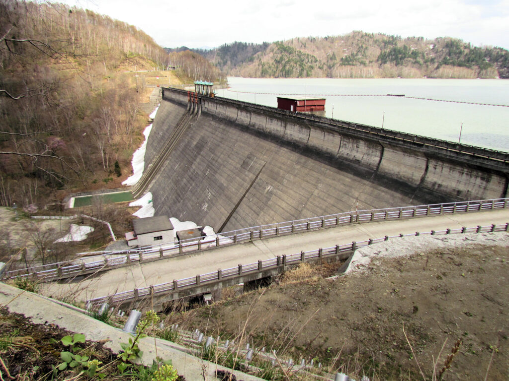 【ダム情報】河川名:石狩川水系夕張川、型式:重力式コンクリートダム、ゲート:クレスト(自由放流)×12門・ジェットフローゲート×2門・高圧スライドゲート×2門・四方水密スライドゲート×1門、完成年:2015年