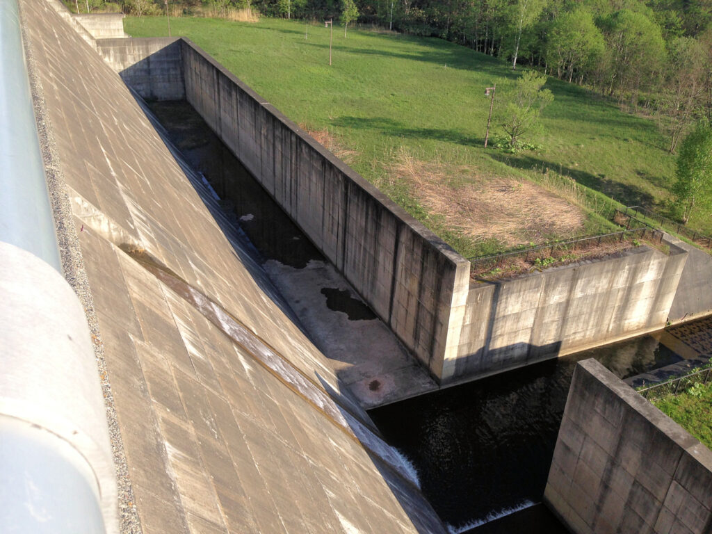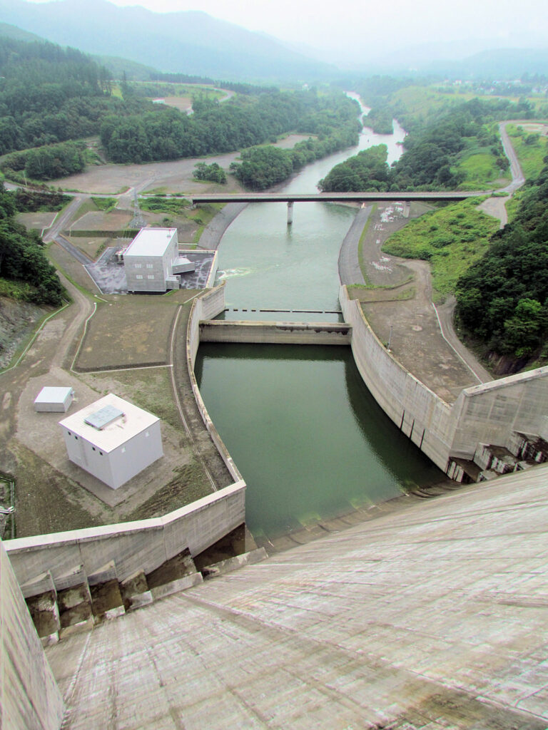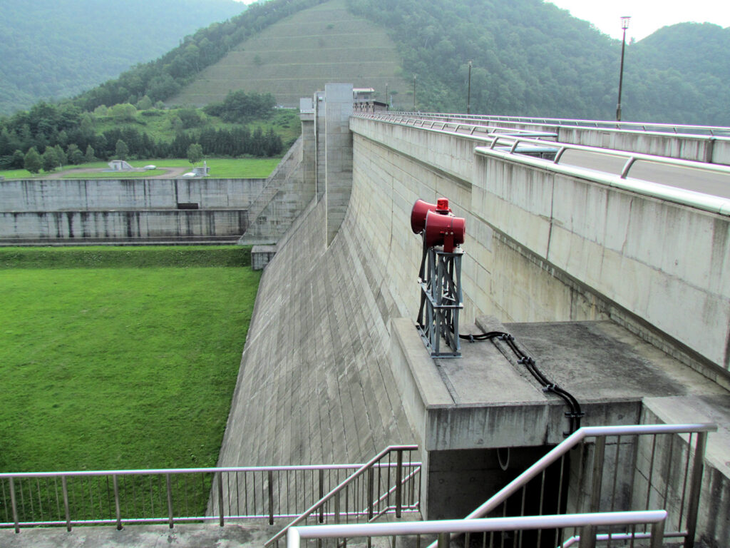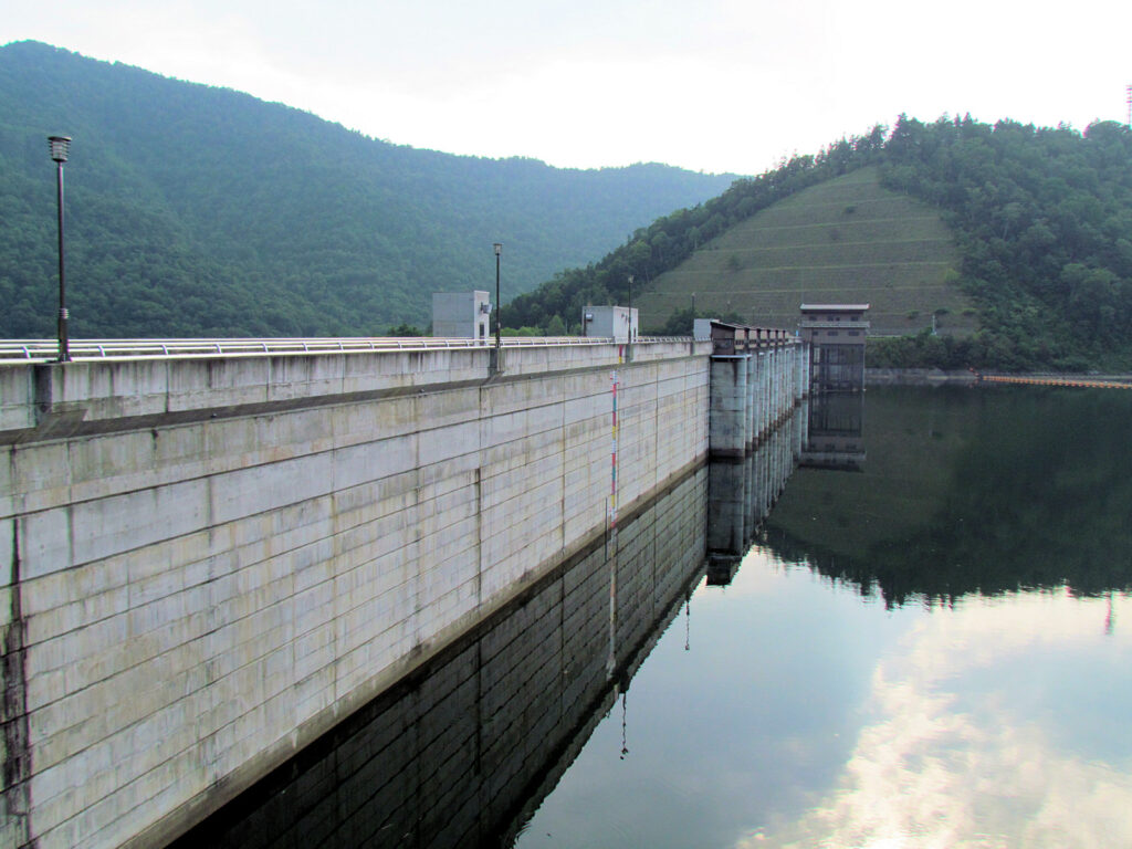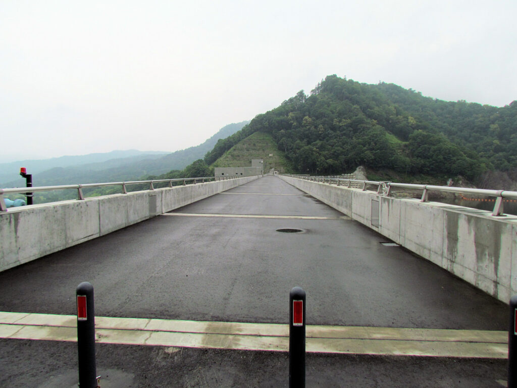 【ダム情報】河川名:石狩川水系夕張川、型式:重力式コンクリートダム、ゲート:クレスト(自由放流)×12門・ジェットフローゲート×2門・高圧スライドゲート×2門・四方水密スライドゲート×1門、完成年:2015年