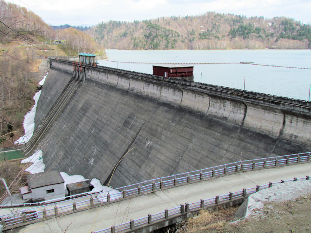 【ダム情報】河川名:石狩川水系幾春別川、型式:重力式コンクリートダム、ゲート:クレストローラーゲート×3門、完成年:1957年
