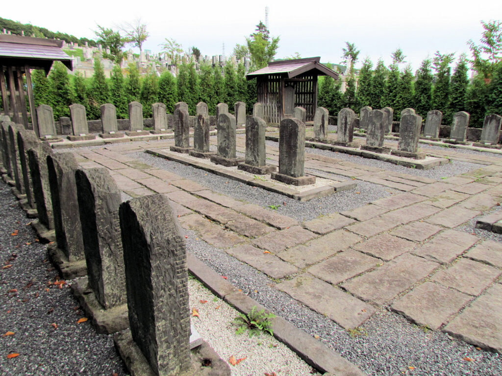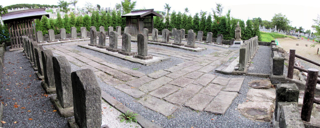 (端にある屋根付きの大きな墓は、大石内蔵助と嫡男・主税の物です。)