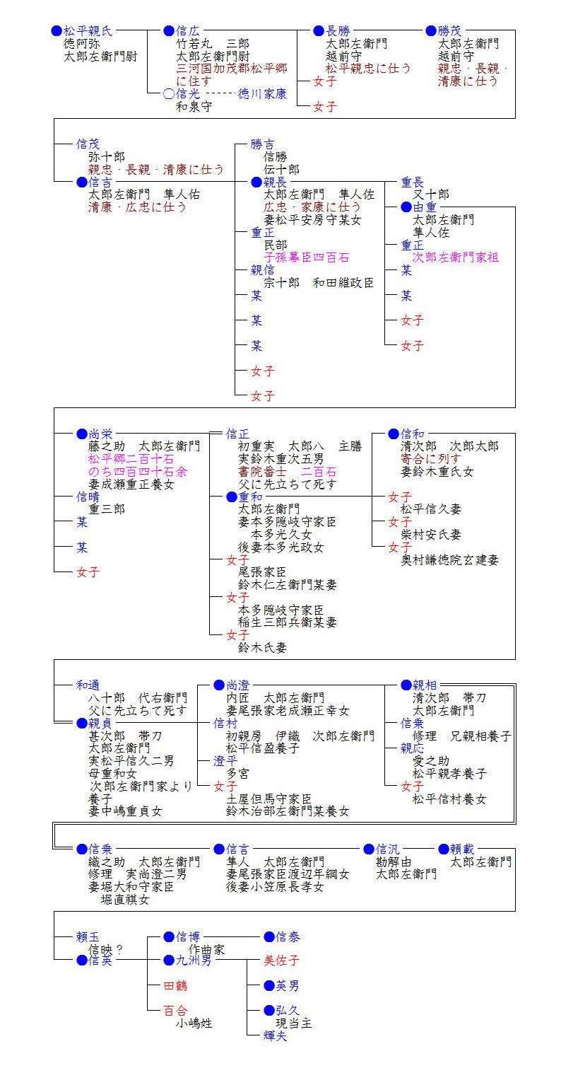 宗家に従い、たびたび軍に加わり功績を挙げていますが、二代長勝・三代勝茂・勝茂の子信茂・四代信吉・信吉の子勝吉・五代親長の子重長と討ち死し、六代由重は戦いの傷により軍事に従うことが出来ず松平郷に閑居するなどして、機会に恵まれず、結局四百四十石余の微禄ですが、交代寄合として残りました。