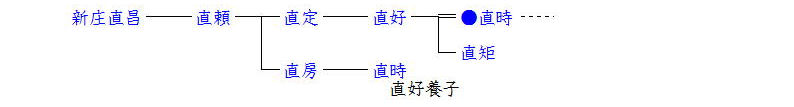 この新庄家は常陸麻生藩新庄家の分家です。新庄家は藤原北家秀郷流と言われますが、直頼は豊臣秀吉に仕え、常陸麻生3万300石を領しました。(のち2万7300石)三代直好は嗣子がなかったので、従弟直時を養子として跡を継がせましたが、その後養父直好に実子直矩が生まれたので、直矩の成長の後2万300石は直矩に継がせ、自らは7000石を領し交代寄合格となりました。しかし、直矩の養子を定める時に不手際があり領地没収となりました。しかし、隠居直時に3000石が与えられ、合わせて1万石となり本家の名跡を継ぎました。その子孫は、常陸麻生藩1万石を継承し維新を迎えました。