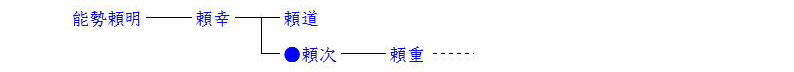 能勢家は清和源氏頼光流で、国基が摂津国能勢郡を領し、能勢を家号としました。頼次は豊臣家に仕えていましたが、関ヶ原の役の後は徳川家康に仕え3000石を知行し、のち2300石を加増されました。頼次代に交代の例がありました。その子孫は4000石余の旗本として存続しました。