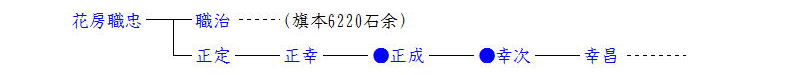花房家は清和源氏足利流で、足利泰氏の八男上野律師義弁の子五郎職通が常陸国花房郷に住して花房と称したのに始まります。この花房家は職忠の三男正定を祖とし、その子正幸は宇喜多直家・秀家に仕えて1万8000石を領しました。その子正成は3万1000石を領しましたが、家中争論により宇喜多家を離れ、徳川家康に仕え5000石を領しました。『諸家系譜』では正成・正次(幸次)が交代寄合とあるそうです。幸次はその後加増を重ね、9500石余を知行し、子孫は5000石の旗本として存続しました。