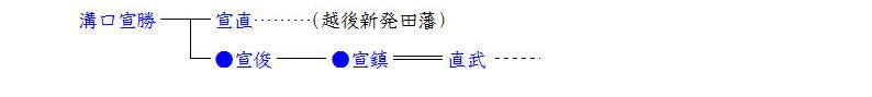 この溝口家は越後新発田藩溝口家の分家で、溝口宣勝の三男宣俊を祖とします。宣俊は、父の遺領より5000石を分知され寄合に列し、池端に居所を営み、子宣鎮の代まで交代寄合に列しました。子孫は、5000石の旗本として存続しました。