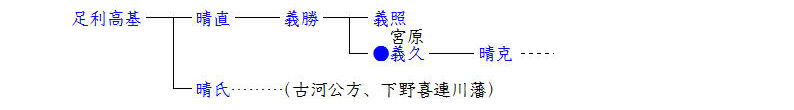 宮原家は関東(古河)公方足利家の分家に当たります。家祖晴直は、古河公方足利高基の長男で、はじめ上杉憲房の跡を継ぎ関東管領職に補せられ、上杉憲広と称しましたが、のち管領職を憲房の子憲政に譲り古河へと帰り、その後真理谷信政の勧めにより上総国宮原に移りました。そして、その子義勝、その子義照と続き、義照は関東に入国した徳川家康に拝謁して1140石を賜り、のち家号を宮原としました。その弟義久は兄の遺跡を継ぎ、格式無官の高家となり、采地に住し、随意に参府し奉仕すべしとされたそうです。その子孫は、1140石の高家として存続しました。