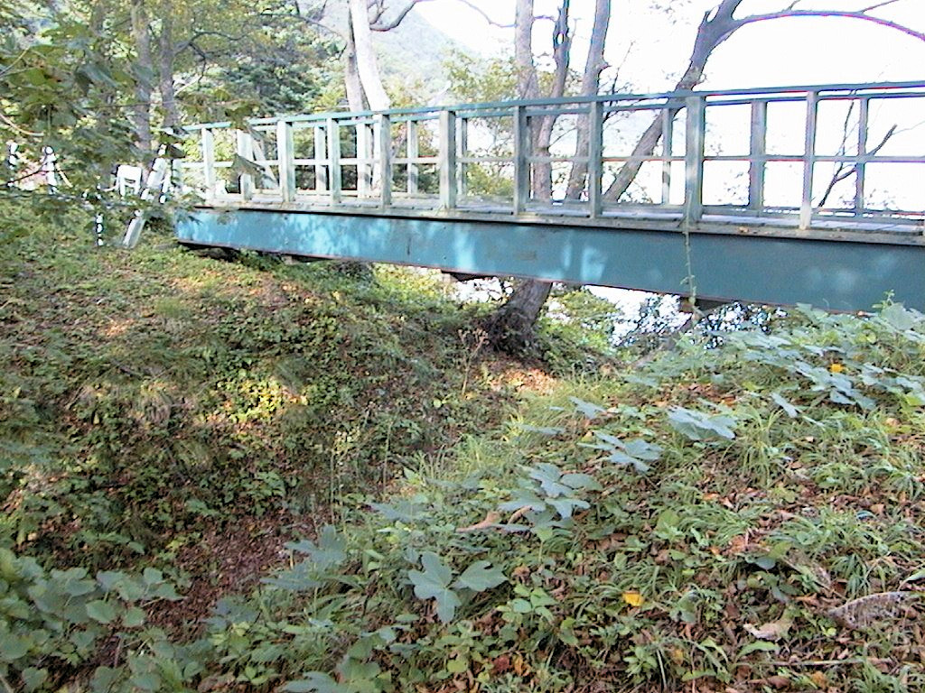 とはいっても、この日の目的地は実は郷土資料館ではなくてそのすぐ近くにある幌別ダムの東側にある台地でして、そこが来馬チャシの場所です。チャシ自体はダムの建設の際に破壊されてしまったようですが、水辺に面した台地の先端部分といういかにもチャシにふさわしい立地でした。