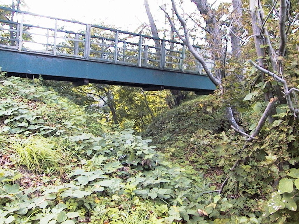 FSIROの山城守さんとの訪城です。昨年の10月、シラオイ陣屋の次に訪れた時には急な土砂降りのため退散したため、今回はそのリベンジからスタートです。ま、相変わらず堀の形はよくわかりませんが、とても良い天気で山城守さんは飛んでいる鳥を写真に収めようとしてましたっけ(^^;) (2001/11/3)