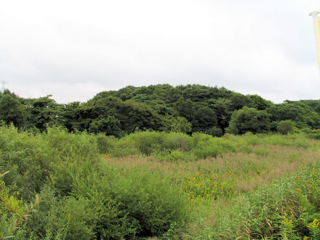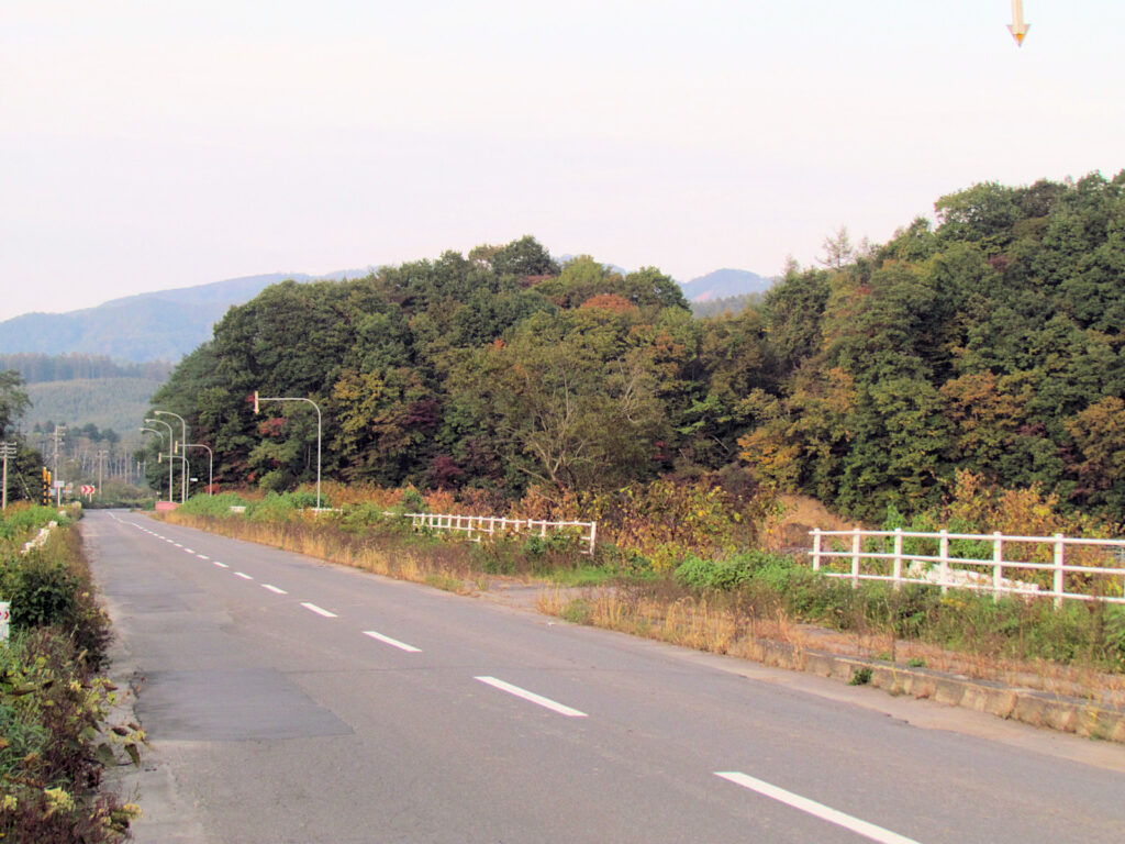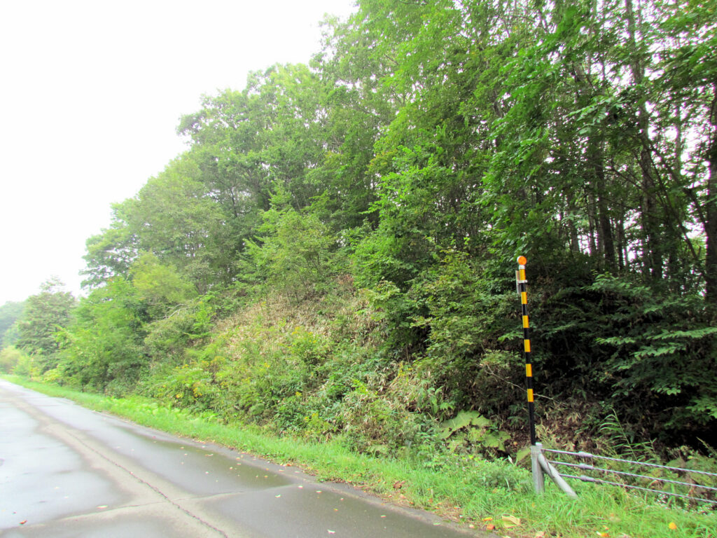 この日は午後用事があって千歳に行くことになっていましたので、その帰りにちょっと足を伸ばして美沢チャシまで行ってみることにしました。新千歳空港側から苫小牧方面にしばらく走ると、それらしき丘陵がいくつか見えてきましたが、どれが美沢チャシなのか良く分かりません。それで、逆に国道36号線側から眺めてみると丁度国道の方に伸びている丘陵があったので、これが美沢チャシだろうと考えました。