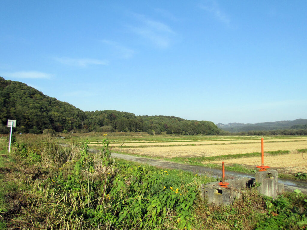 ここはこの日唯一壕を確認できたチャシでした。ただし10年前にあった「○○のチャシ」という看板が無くなって枠だけになっていましたが(^^;) 壕も浅いながらも、以前の通り半円状に伸びていました。(2011/10/9)