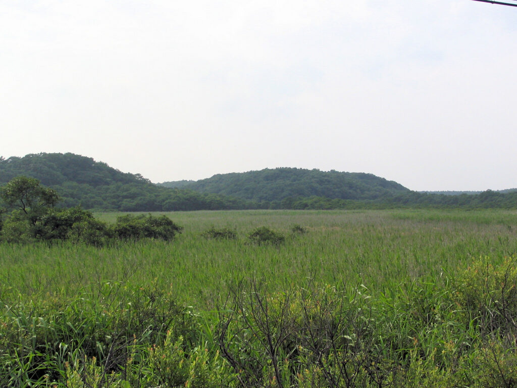 チャシ上にはV字形に連結した2条の直状壕があるそうですが、かなり疲れてきたこともあり斜面を登るのはやめにして、遠景を写真に収めるだけにしました(^^;) (2000/7/9)