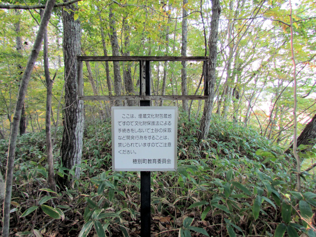 この日は旧FSIRO(niftyの城郭フォーラム)のNACKさんを迎えてのチャシ巡りです。むかわ町穂別のイナエップのチャシのあとはノットカのチャシへと移動しました。2年前と変わらず、壕は浅いですがしっかりと確認できました。相変わらず看板は地面に落ちたままですので、何とか直していただきたいです。