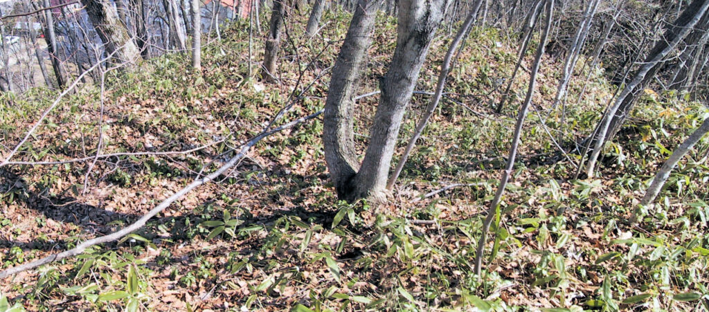 この日はここではなく、奥にある豊田2チャシが目的なので、横目で見ながらスルーしました。見たところ以前あった看板の代わりに標柱が立ったようです。これだけでも訪城する方としてはありがたいです。むかわ町教育委員会の皆様に感謝です。(2022/4/30)