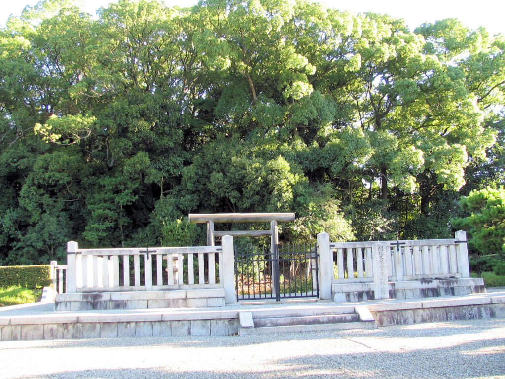 まずは開化天皇陵です。実は奈良で泊まったホテルのすぐ裏がこの開化天皇陵だったわけで、ホテルの横から玉砂利の道が続き、その奥に鳥居があって、その向こうの山が開化天皇陵でした。ネットで調べてみたら天皇陵はみんなその前に鳥居があるようですね。