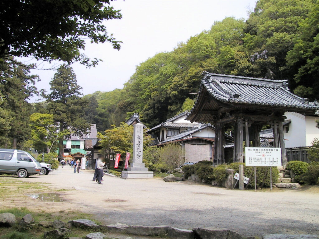 竜潭寺は、井伊家発祥の地・遠州井伊谷の菩提寺を移して、元和3年(1617)に完成したもので、方丈・庫裏などの主な材木は遠州から運んだそうですが、山門は佐和山城の城門を、梵鐘は佐和山城の陣鐘をそのまま用いたそうです。現在の山門は当時のものではありませんが、梵鐘は現在でも残り、龍潭寺の玄関に吊されていました。