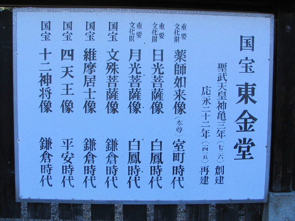 現在残っている建物では、東金堂・五重塔・北円堂・三重塔が国宝に、南円堂が県文化財に指定されています。北円堂・三重塔は鎌倉初期の再建と中でも古く、東金堂・五重塔は室町時代のもの、南円堂が江戸中期に再建されたものです。