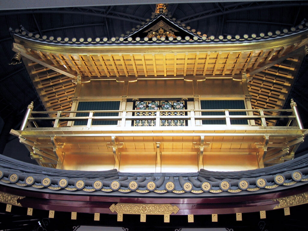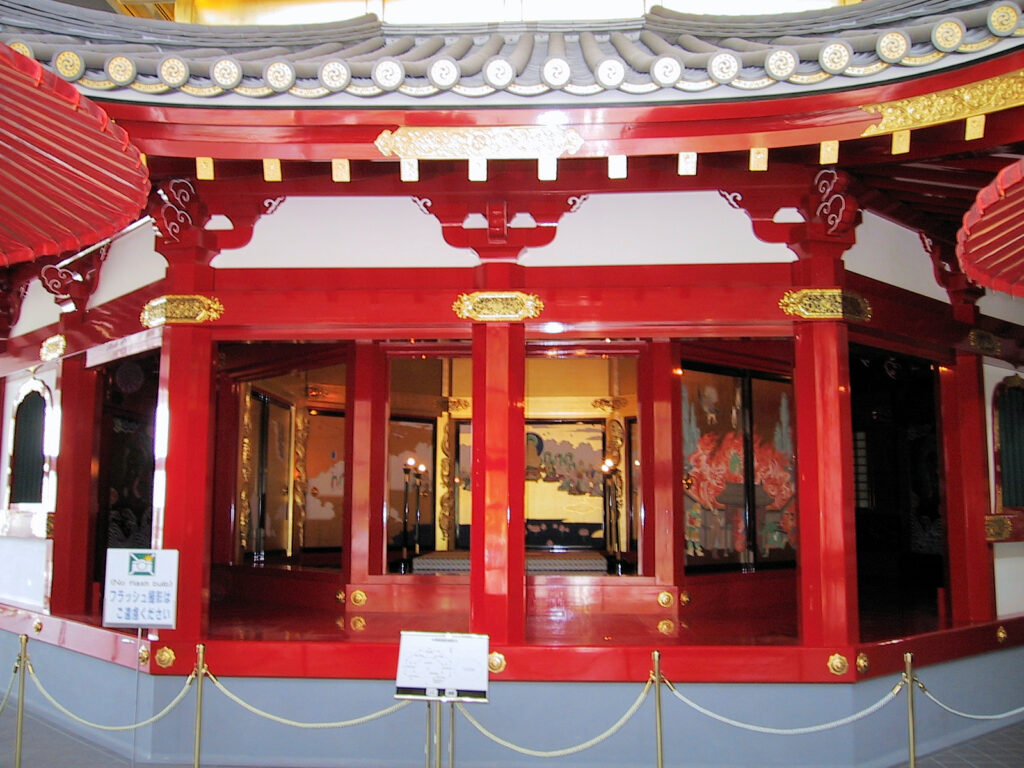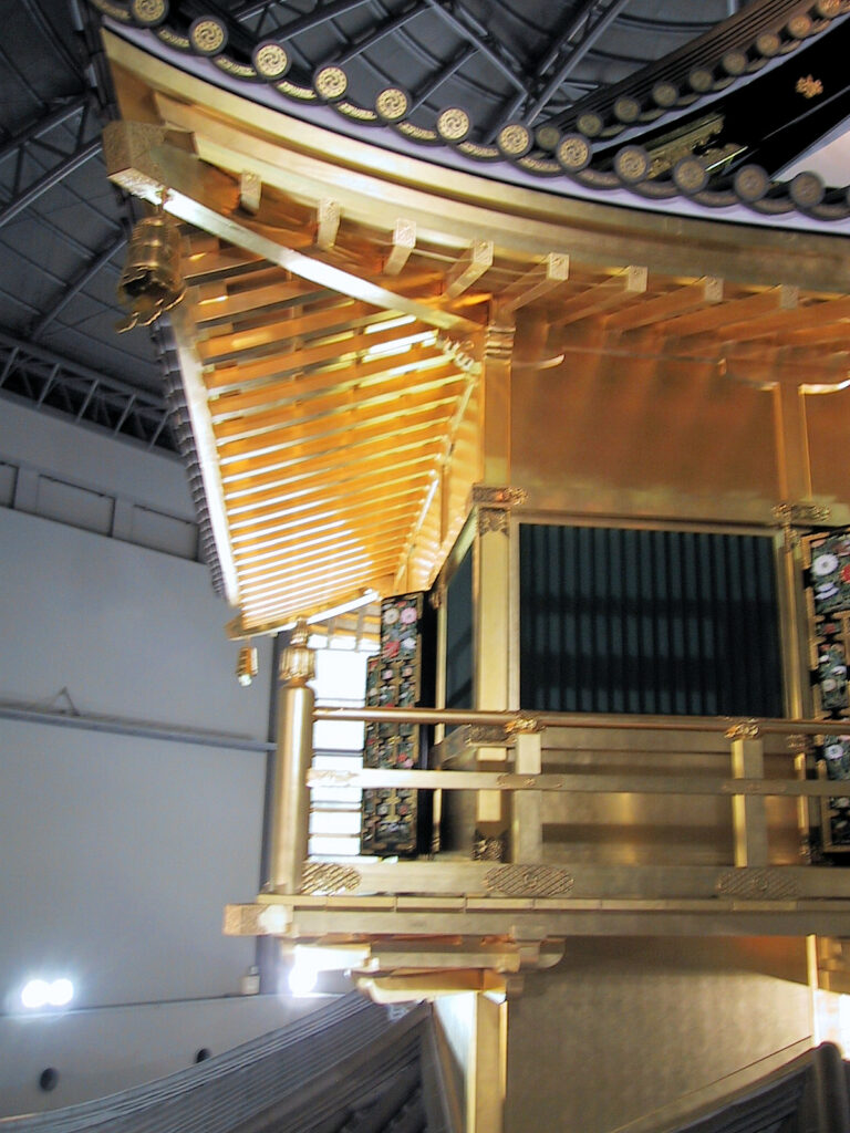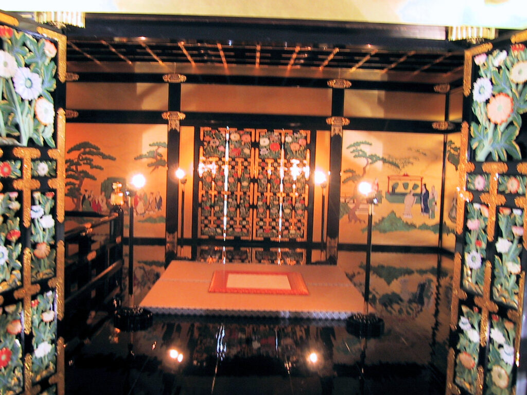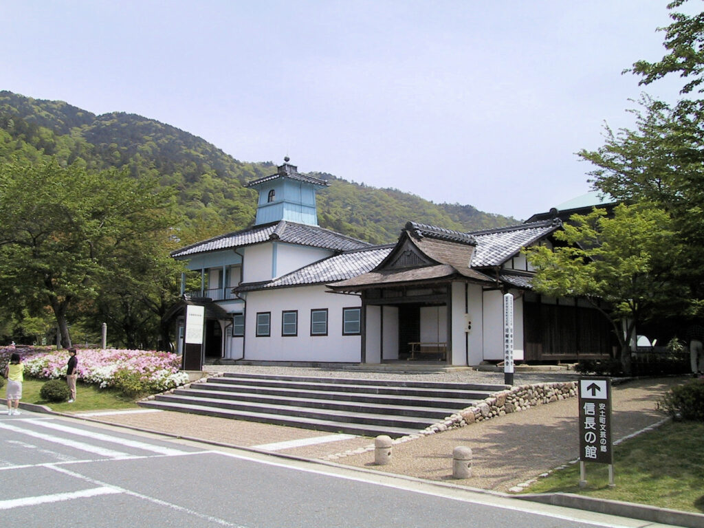 安土城のあと、観音寺城の麓にある近江風土記の丘の「安土城天守 信長の館」に行きました。ここにはセビリア万博に出展したという安土城天守の5層目・6層目を復元したものが展示してありますが、何事も一見はしかず、復元とはいえかつての安土城の壮麗さを実感できるものとなっていました。