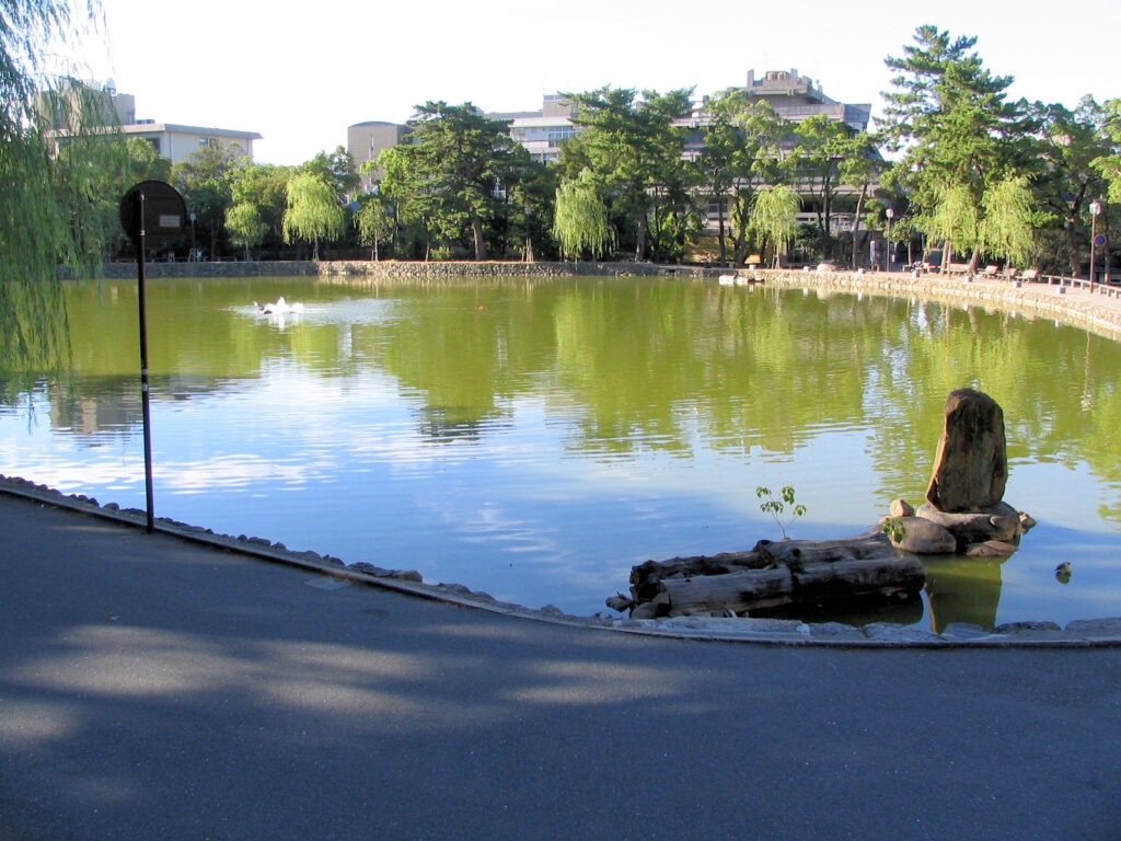 興福寺を探訪したあと、そのすぐ前にある猿沢池に行きました。この池はもともと興福寺が秋の彼岸などに捕らえられている生き物を買い集めて逃がしてやる法会、放生会を行う放生池だったそうです。
