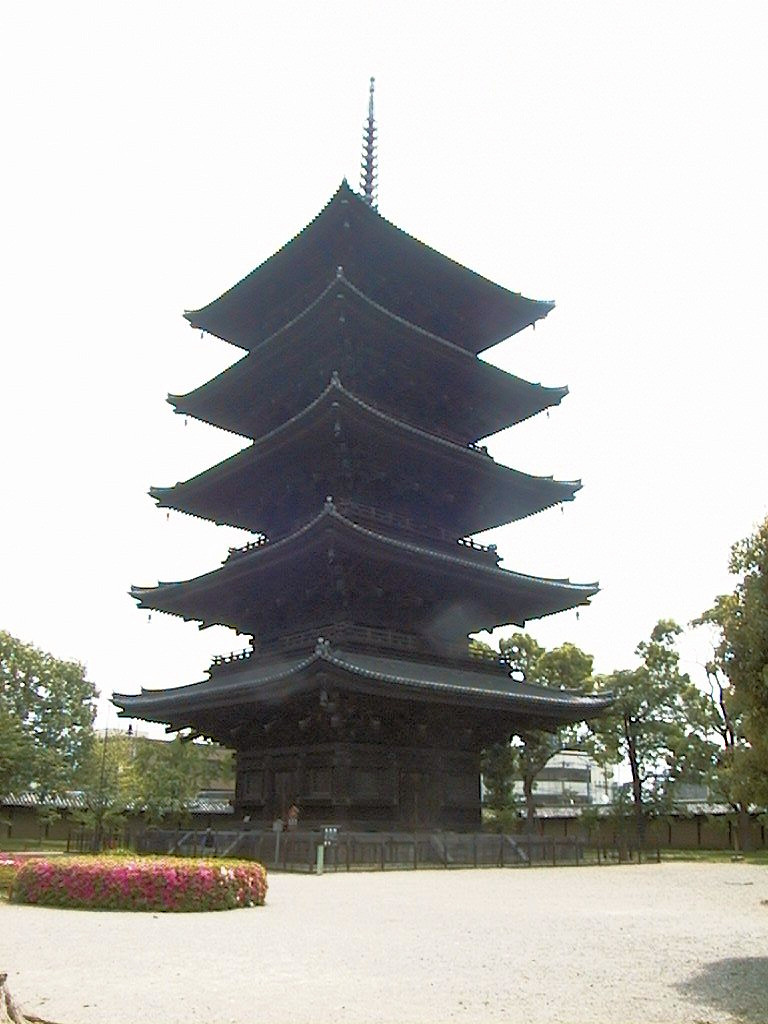 観智院をあとにしていよいよ東寺へと向かいました。桓武天皇が平城京の旧仏教勢力から逃れるために平安京へ遷都した際には京都に寺を建てるのを許されませんでしたが、その例外が官寺であったこの東寺と西寺でした。西寺は早くに廃れて残っていませんが、東寺(正式名:金光明四天王教王護国寺秘密伝法院)はいつの時代にも為政者の保護を受け繁栄してきました。金堂や講堂に安置された仏像群はもちろんのこと、高さ55mと日本一の高さを誇る国法の五重塔もさすがに立派なものでした。
