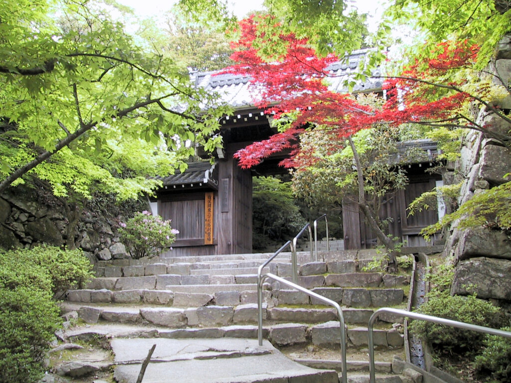 また、佐和山城城門の古材を使って建てたという茶席果然室がありますが、これは現在公開していないそうです。方丈の襖絵は芭蕉の高弟の森川許六の作で、境内には池泉鑑賞式の東庭、枯山水の南庭などすぐれた庭園もあります。(庭園の写真を撮るのを忘れました、残念(^^;))