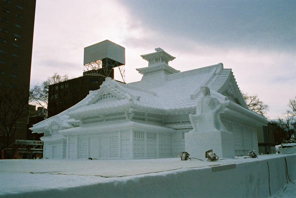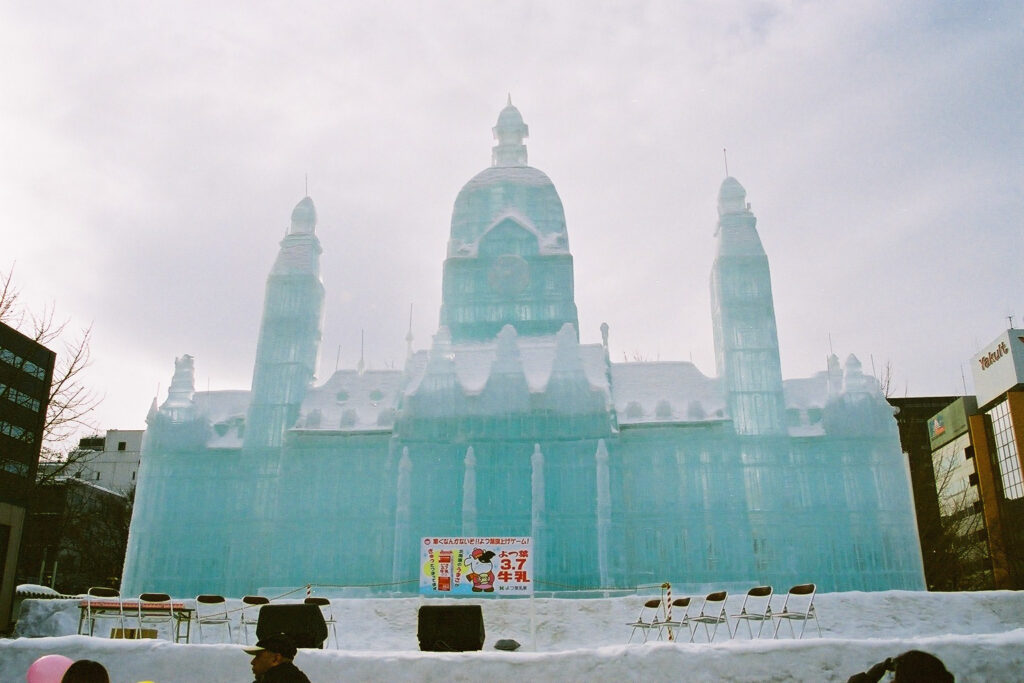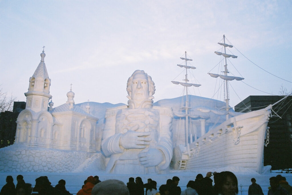 大通7丁目はタイのチャックリー・マハー・プラーサート宮殿。この7丁目のHBC広場はいつも外国の著名な建造物を大雪像としているんですが、今年もなかなか立派なものです。またここはいつも大雪像の前に階段の付いた台を設置して撮影スポットとしているんですが、今年はそれだけでなくスタッフの人が写真を撮ってくれるんですねえ。驚いたのは自分のカメラで撮ったあとに一眼レフカメラで撮ってくれ、それが30秒ほどでプリントされ、撮影台を降りる頃にはできていて、「一枚いかがですか?」とのおすすめ(^^;) まあせっかくの記念なので買ってきましたが、あれは良い商売かも(^^;)