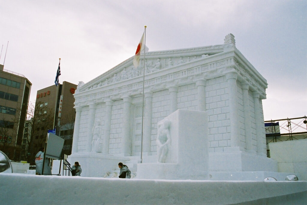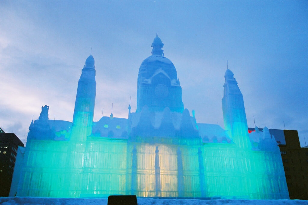 今回は坊主はまだ外に連れて出るのは早い、風邪でも引いたら困るしということで、一人寂しく回ってきました。そんなわけで、大通5丁目の「ハノーファー市庁舎」の氷像と大通7丁目HBCアテネ広場の「パルテノン神殿」だけを見て帰ってきました。