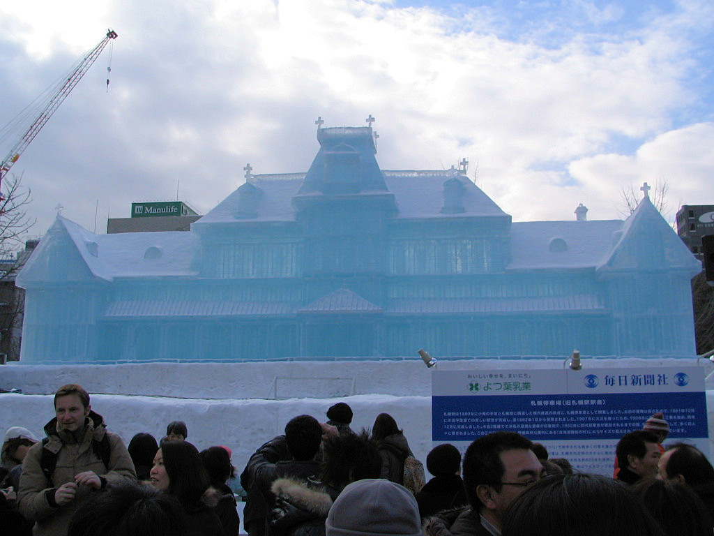 大通5丁目は札幌停車場(旧札幌駅駅舎)の大氷像です。これは野幌森林公園内の「北海道開拓の村」の正門としても復元されていますけど、なかなかきれいなものです。