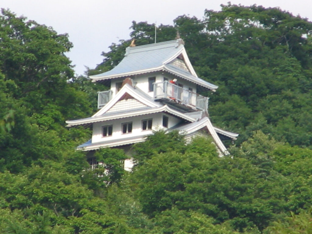 国道38号線を芦別から赤平へ抜ける途中にあります(^^;) 一見、大坂城天守風ですが、実は「徳川」という人形メーカー(だったかな?)が建てた店舗兼展望台のようなもの(?)です。中にはいると1階は土産物コーナーで、その一角で人形作りの実演をしていました。2階か3階には食堂があって、4階辺りから展望台になっていて、山本勘助の鎧とか、武田信玄の鎧などの複製が展示してありました(^^;)