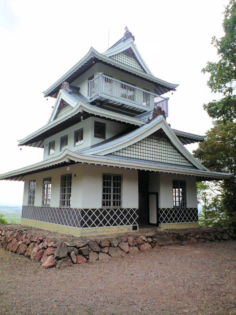 秋には再訪を、なんて言っていましたが再訪するのに一年かかってしまいました(^^;) この日は道立旭川美術館で開催されていた「大三国志展」を見てから東川町へ向かいました。キトウシ森林公園のパンフレットを見てみると、展望閣の近くに駐車場があるようなので車で上ってみると、難なく駐車場まで上り、そこから坂道をちょっと上ったところに展望閣はありました。近くから見てみるとなかなか本格的な城郭建築です。とはいってもトタン屋根でしたので、所々錆びていましたが(^^;) 中には昔の農機具や展望閣が建てられた頃の写真などが展示してありました。
