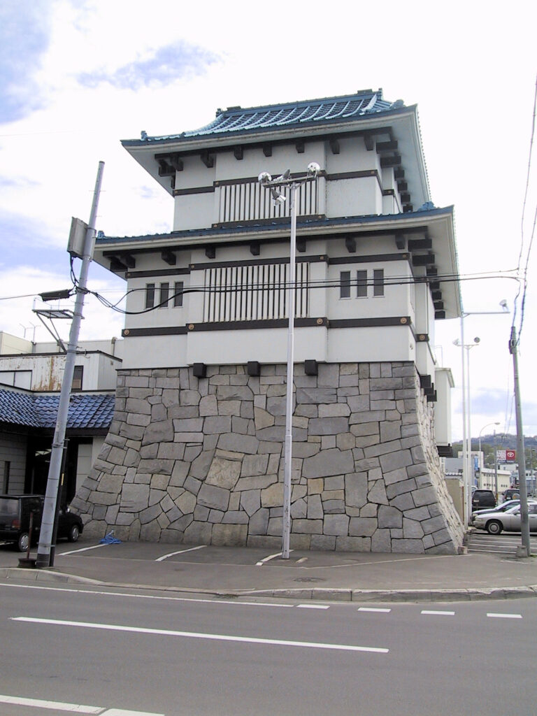 『北海道の歴史散歩』(山川出版社)には「白石城主片倉氏の居城をモデルに」とありますが、とても白石城をモデルとしたとは思えません(^^;) ちょっと城郭風建築というには中途半端な...(^^;) かえってこのあとに行った旭川のお城の鯉寿司の方がお城らしかったりして(^^;)