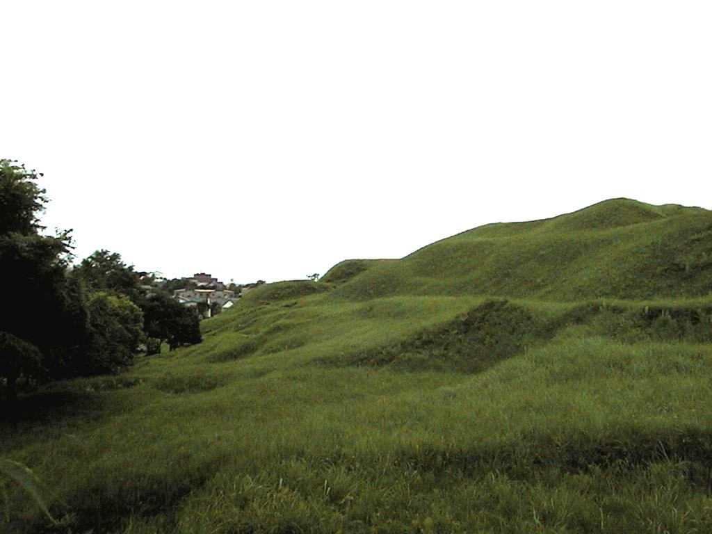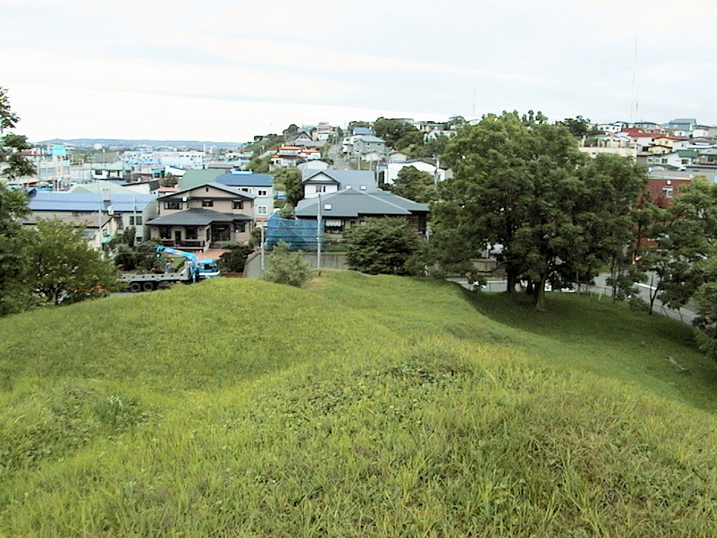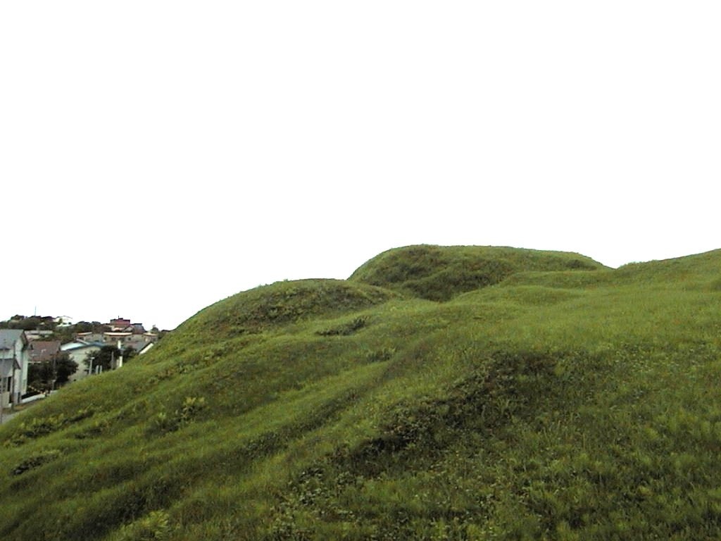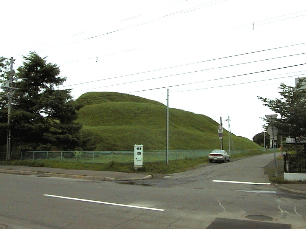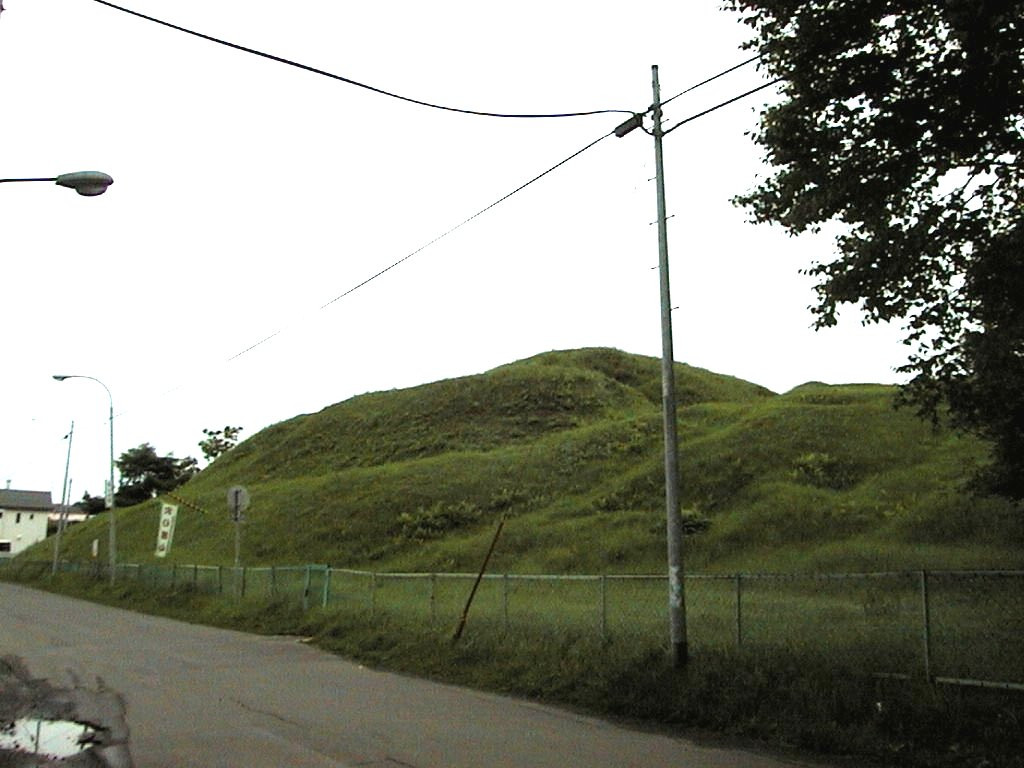 道東チャシ巡り第二弾の二日目です。こちらも前日のオタフンベチャシと同じく国指定史跡です。ここは2回目ですが、やっぱり好きです(^^) 町のど真ん中にどんと小山が残っているのですが、壕とも土塁とも付かない起伏が縦横に走り、なかなか味のある形状をしております。副砦と主砦があり、ひょうたん型をしていますが、主砦の方は御供山型をしていて、副砦から眺めるととても形が良いです。今回も満足(^^) (ただの小山じゃないかと言われそうですが(^^;)) (2002/5/4)