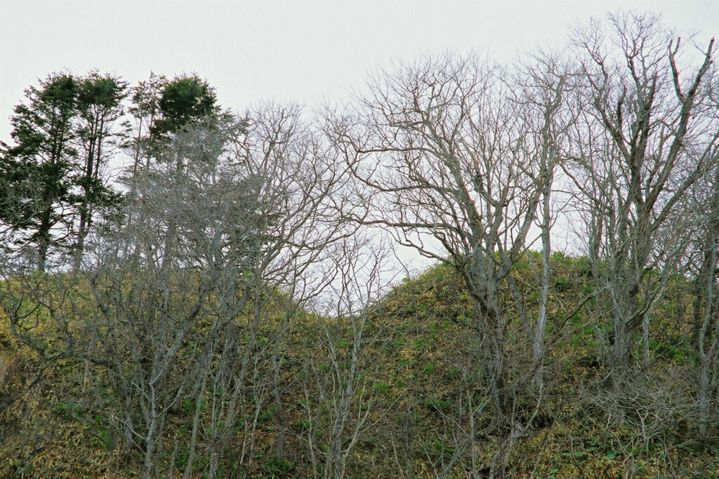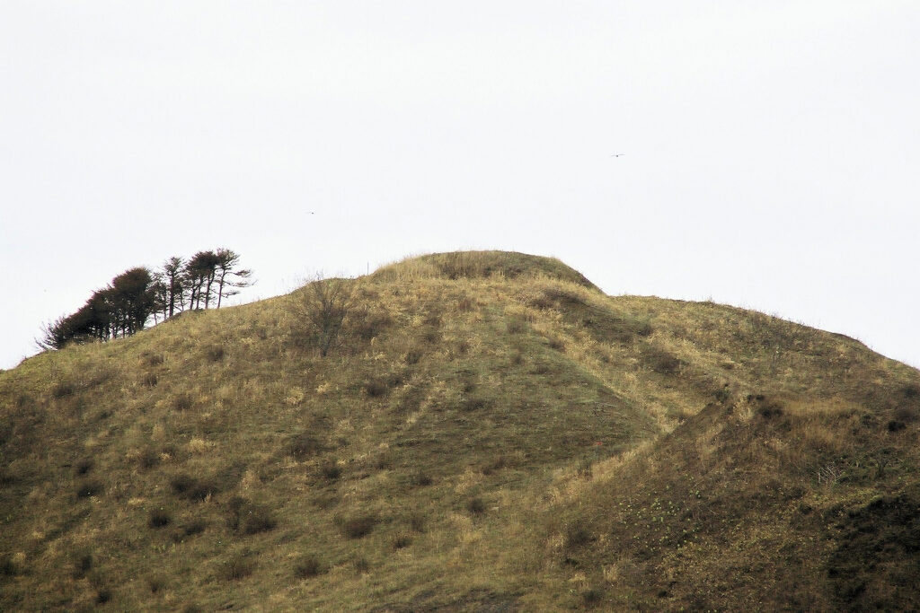 (頂上の真ん中付近と右端の方に壕跡らしきものが見えます。)