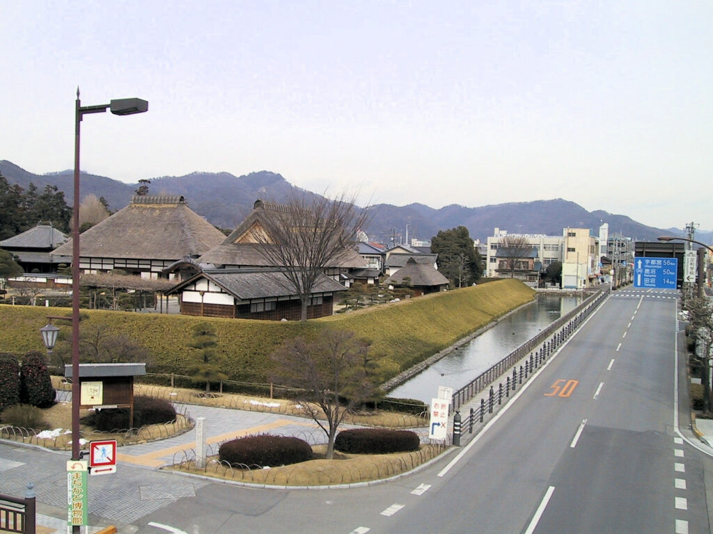 この日は館林駅でまず大村さんと合流し、館林城を少し見たあと足利へ向かいました。太平記館の駐車場で越後からおいでの井比さんと合流し、まずは足利学校へ。足利学校前の歩道橋に登ると、丁度足利学校が一望にでき、方形の土塁と堀がとてもきれいに見えました。大村さんのお話によると数年前、天皇・皇后両陛下が訪問された際に、それに会わせてかなり整備されたそうです。
